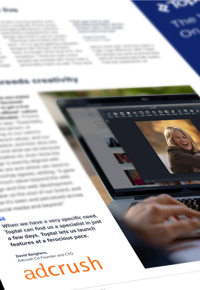 Toptal connects you with a global network of world-class marketing and creative experts who have proven track records at top brands and agencies. In just 48 hours, you can hire the top-tier talent you need to meet and exceed client expectations.